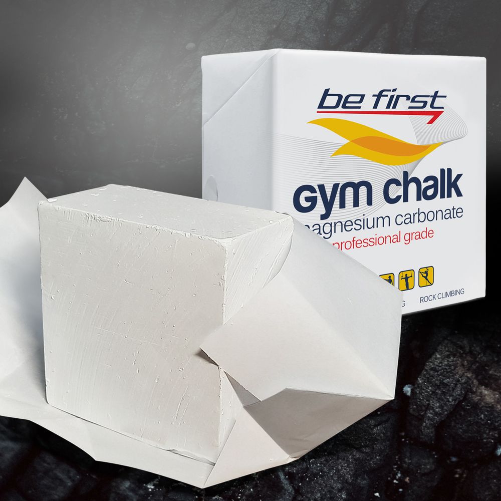 Спортивная магнезия Be First – это белый порошок, состоящий в основном из карбоната магния и предназначенный для подсушивания рук, а также улучшения их сцепления со снарядом при занятиях гимнастикой, тяжелой атлетикой, спортивным альпинизмом и другими видами спорта.