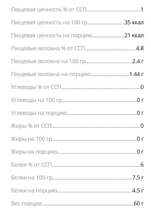 в 100 граммах: гидролизованый коллаген - 8 г, гиалуроновая кислота - 83 мг.