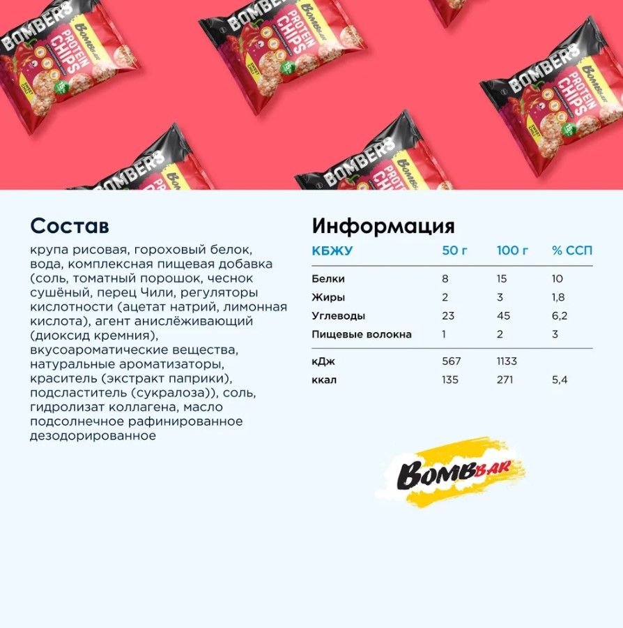 Bombbar Чипсы цельнозерновые протеиновые, 50 гр.