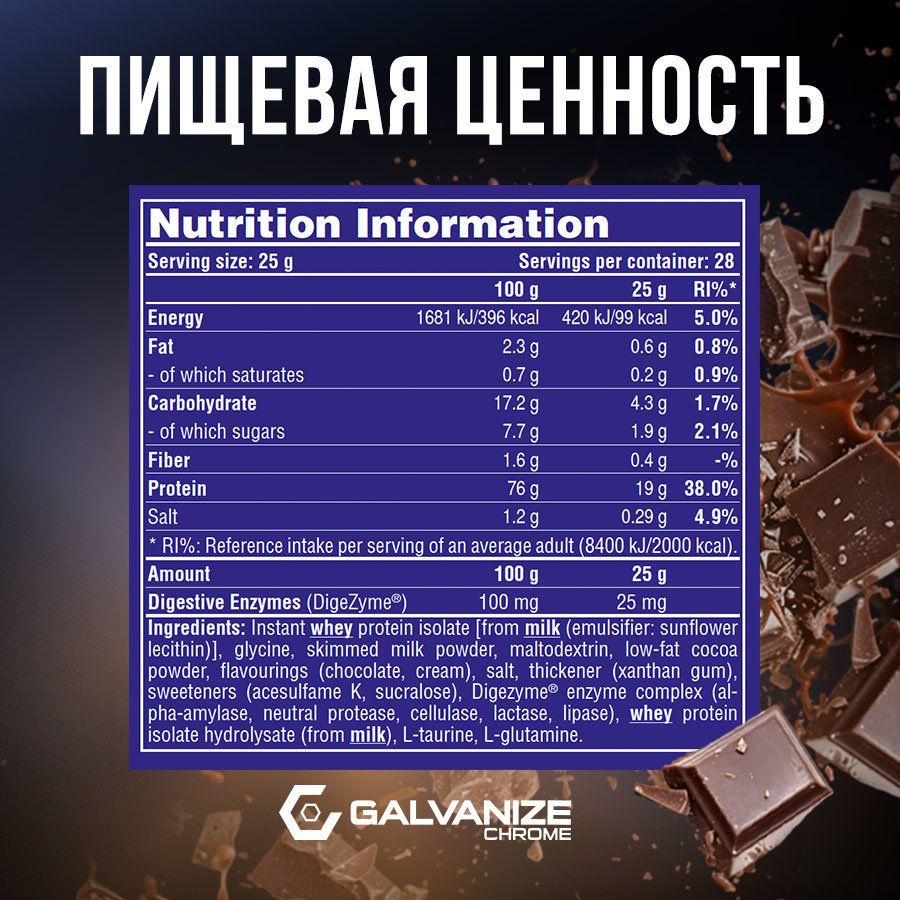 100 Iso Zero предназначен для тех, кто хочет максимальной производительности без компромиссов для увеличения мышечной массы и роста сухой мышечной ткани. 100 Iso Zero разработан из уникального белкового сырья, которое прошло дополнительную специальную обработку для получения лучшего белка, который у нас когда-либо был. Для того чтобы получить продукт, который полностью не содержит углеводов, сахара, лактозы и глютена, мы тесно сотрудничали с другими поставщиками сырья, чтобы исключить все эти в противном случае присутствующие естественным образом нежелательные питательные вещества.