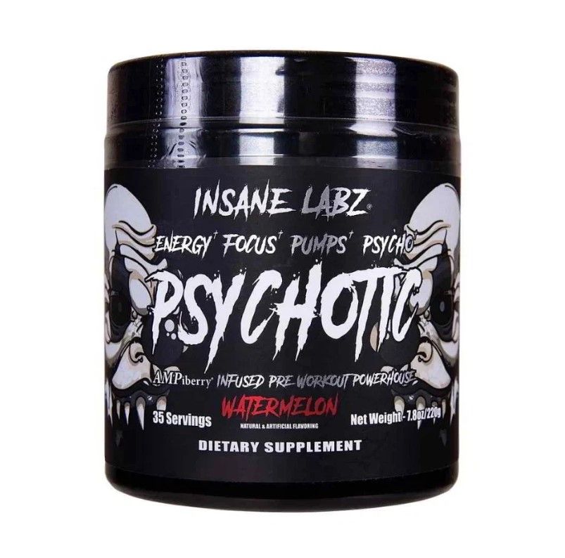 Insane Labs Psychotic - стимулирующий предренировочный комплекс, который обеспечивает энергией и помогает фокусироваться. Эффект, возникающий сразу после его приема, держится около трех часов. Этого более чем достаточно, чтобы сделать тренировку невероятно интенсивной.