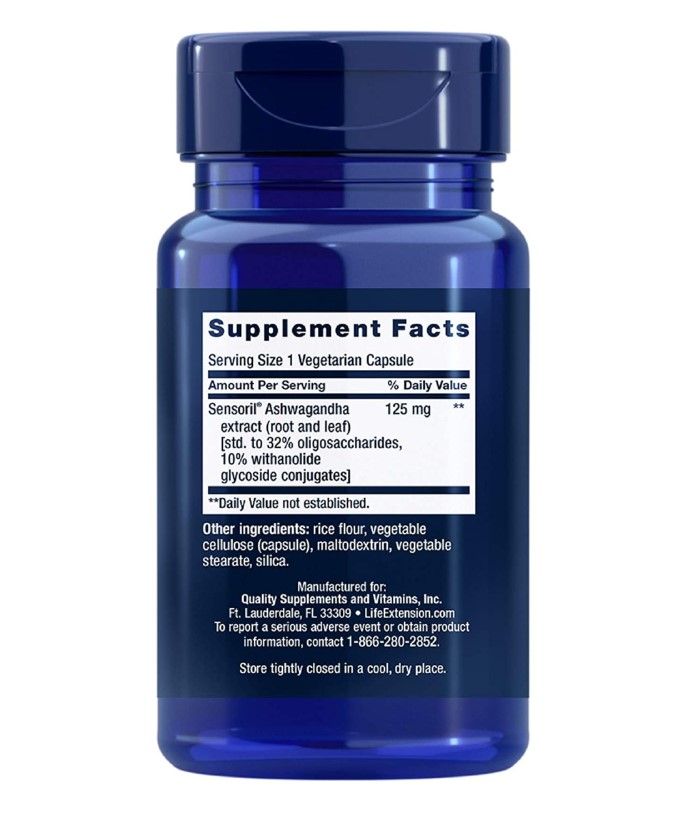 Life Extension Ashwagandha – это высококачественная пищевая добавка в виде 60 вегетарианских капсул, содержащая экстракт ашваганды, известный своими адаптогенными и стресс-редуцирующими свойствами. Ашваганда, также известная как Withania somnifera, является традиционным растением, используемым в аюрведической медицине для улучшения общего состояния здоровья, повышения устойчивости к стрессу и поддержания жизненного тонуса. Экстракт ашваганды в этом продукте стандартизирован для обеспечения высокой концентрации активных соединений, таких как витанолиды, которые способствуют её эффективности.