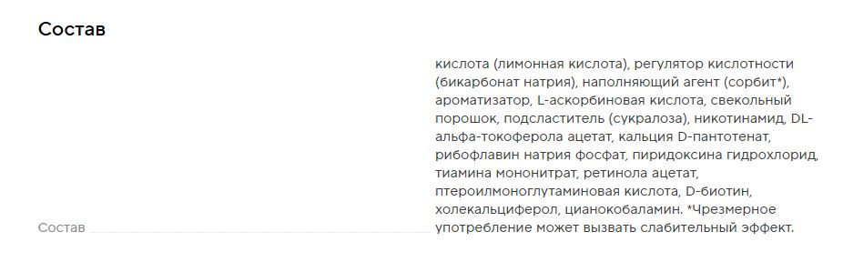 Количество питательных веществ в порции продукта (1 шип. табл.):