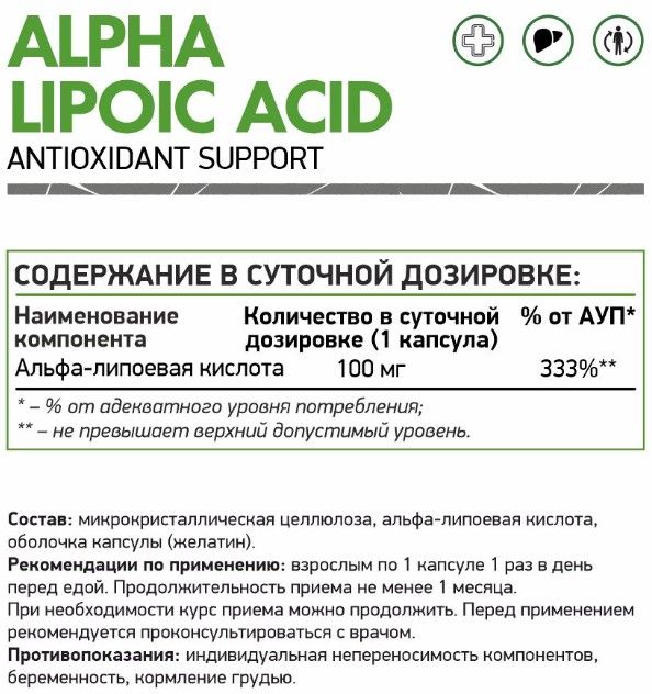 Natural Supp Alpha Lipoic Acid, 60 капс.
