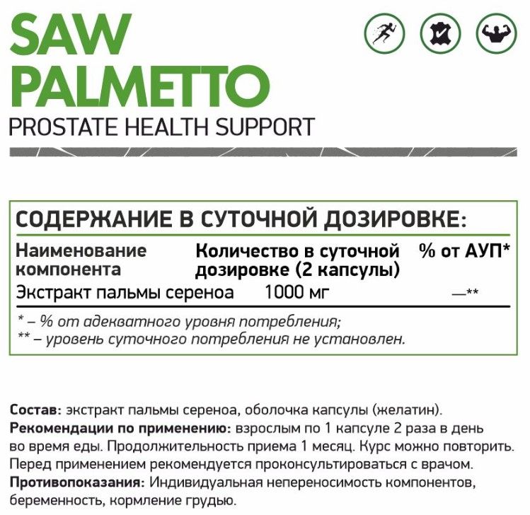 Свойства NaturalSupp Saw Palmetto: