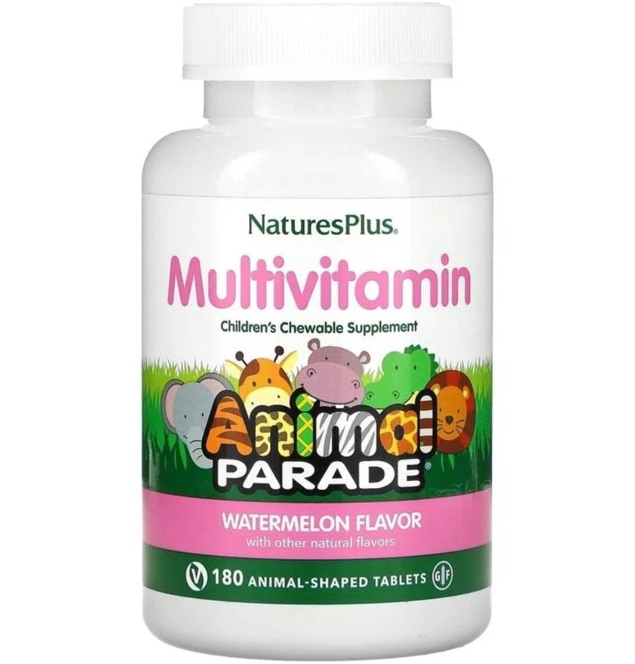 Детские мультивитамины и минералы Animal Parade Children's Chewable Multi-Vitamin & Mineral компании Natures Plus выпускаются в виде таблеток, которые по форме напоминают различных зверюшек. Они мягкие на ощупь и легко разжевываются.