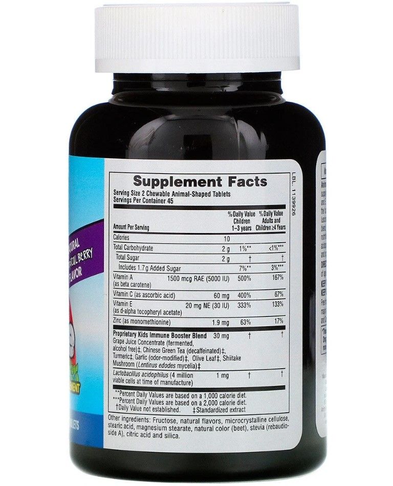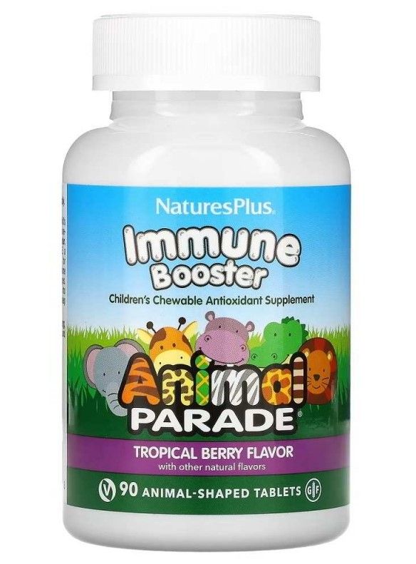 Детские жевательные таблетки для укрепления иммунитета Animal Parade обеспечивают поступление в организм в эффективных количествах укрепляющих иммунитет витаминов A, C и E, а также усиливающий иммунную защиту цинк.