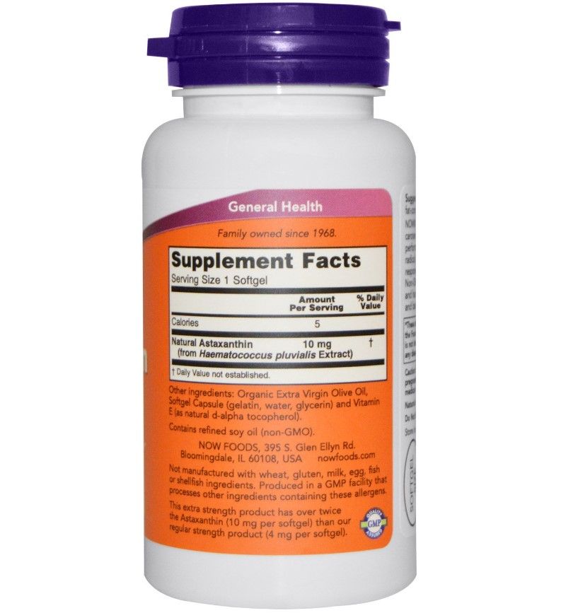 Астаксантин от NOW — это каротиноид природного происхождения, который благодаря своей уникальной структуре играет важную роль в защите клеток от свободных радикалов и в поддержании здорового иммунного ответа. Получен из микроводорослей гематококк (Haematococcus pluvialis) без ГМО и содержит лютеин, кантаксантин и бета-каротин естественного происхождения.
