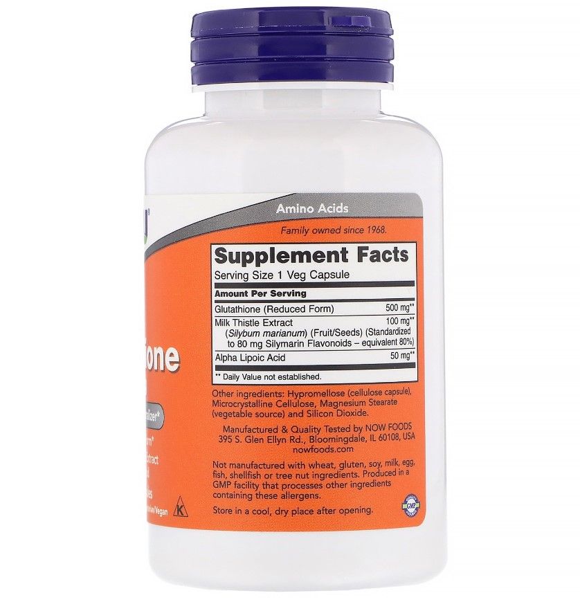 Глутатион представляет собой небольшую пептидную молекулу, состоящую из трех аминокислот: цистеина, глутаминовой кислоты и глицина. Он производится в каждой клетке тела, особенно высокий уровень производства — в печени. Глутатион крайне важен для нормальной работы иммунной системы и необходим для процессов детоксикации. Он также играет важную роль в системе защиты организма от окислительного стресса путем прямой нейтрализации свободных радикалов, а также за счет поддержания активности витаминов С и Е. Экстракт расторопши и альфа-липоевая кислота включены в качестве дополнительных ингредиентов.