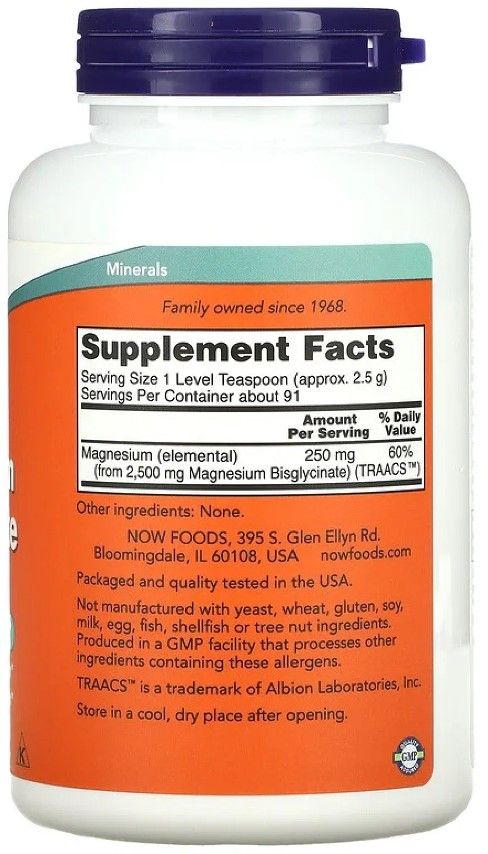 NOW Magnesium Bisglycinate Powder — это отличное решение для тех, кто ищет эффективный и легко усваиваемый источник магния, поддерживающий здоровье нервной системы, мышц и костей, а также способствующий общему расслаблению и улучшению качества сна.