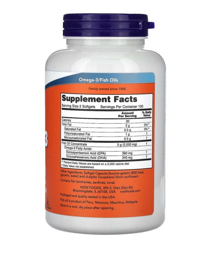 NOW Omega-3 1000 mg - это высокоэффективная добавка, обеспечивающая организм омега-3 жирными кислотами, которые поддерживают здоровье сердечно-сосудистой системы, мозга, суставов и глаз. Благодаря высокому качеству ингредиентов и удобной форме, этот продукт является отличным выбором для поддержания общего здоровья и благополучия.