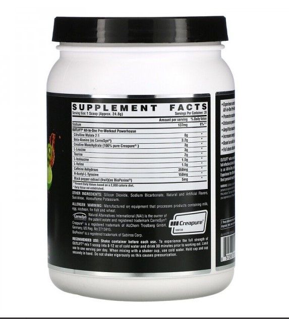 Новаторская формула Outlift от компании Nutrex обеспечивает внушительный памп, постоянную энергии, быстрое восстановление и предельную фокусировку, позволяя проводить каждую тренировку наиболее результативно. Приём Outlift от компании Nutrex позволит вам быть на пике производительности даже в конце тренировки. Передовая разработка Outlift от компании Nutrex выведет тренировки на новый уровень, обеспечив впечатляющие результаты!