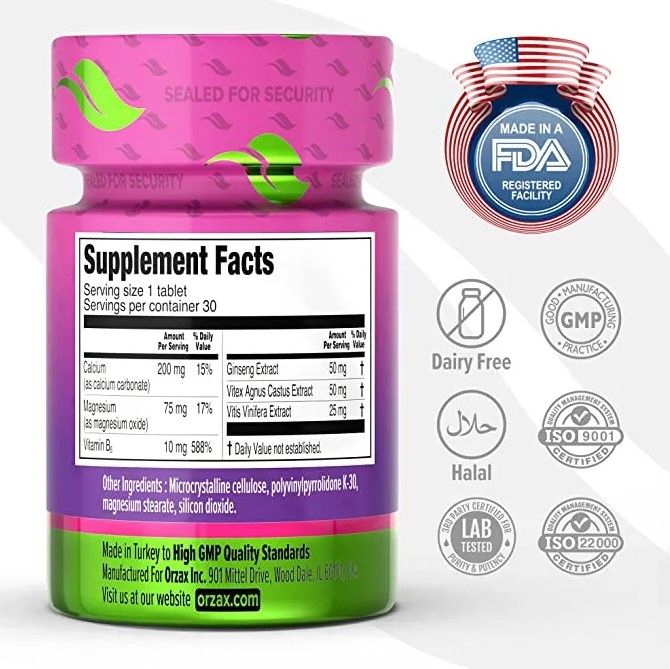 Orzax cycle comfort содержит мощную комбинацию: витекс священный, азиатский женьшень, экстракт масла виноградных косточек, кальций, магний и витамин B6, специально созданную для помощи женщинам, которые испытывают симптомы, связанные с ПМС.