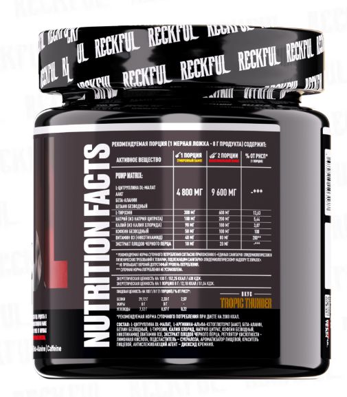 Вдобавок, наш комплекс также содержит ингредиенты, которые снижают утомляемость мышц, повышают концентрацию и поддерживают ваш организм во время интенсивных физических нагрузок. Ощутите мощь и энергию с Reckful!