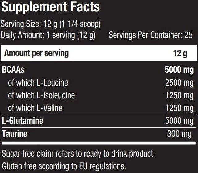 Высокая доза глютамина и ВСАА 1:1 обеспечивает эффективное восстановление мышц после интенсивных тренировок, а также препятствует распаду мышц и снижению производительности.