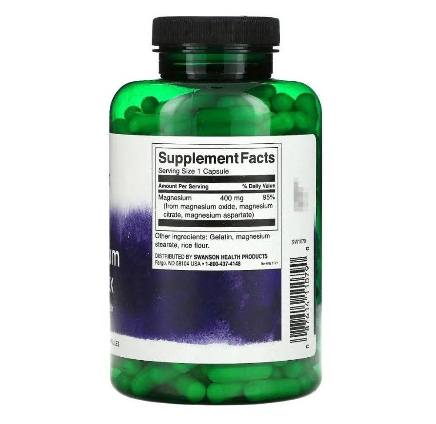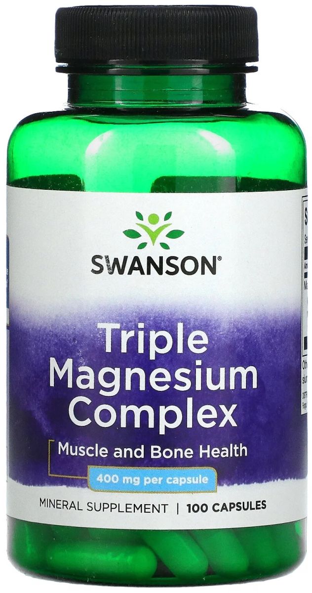 Triple Magnesium Complex – биологически активная добавка от компании Swanson с магнием для поддержания здоровья костной ткани, укрепляет стенки сосудов и мышц. Магний усиливает защитные функции организма, снижает уровень холестерина, предупреждает старение и снижает риск возникновения и развития раковых заболеваний.