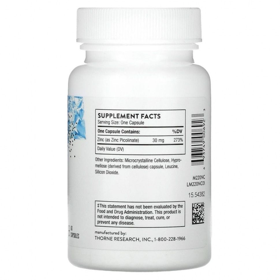 Thorne Research Zinc picolinate 30 мг., 60 капс.