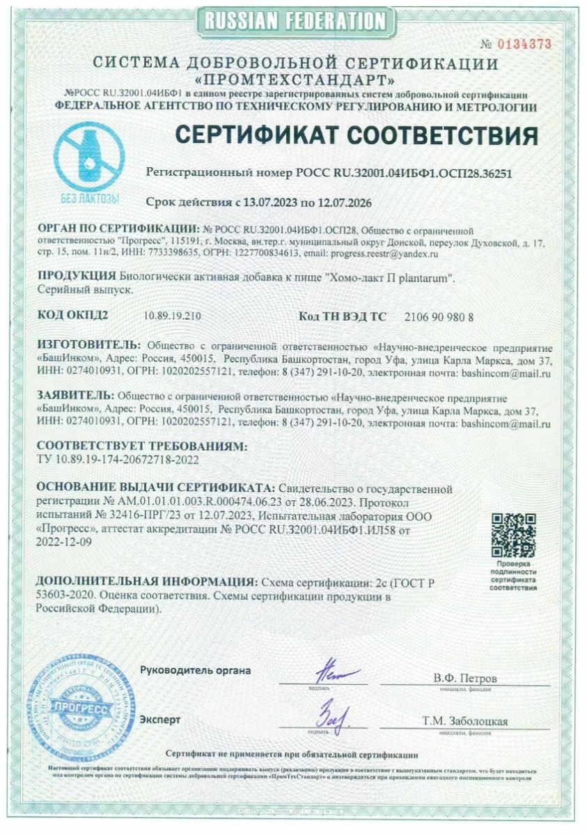 Башинком Хомо-лакт П plantarum форте, 400 мл.