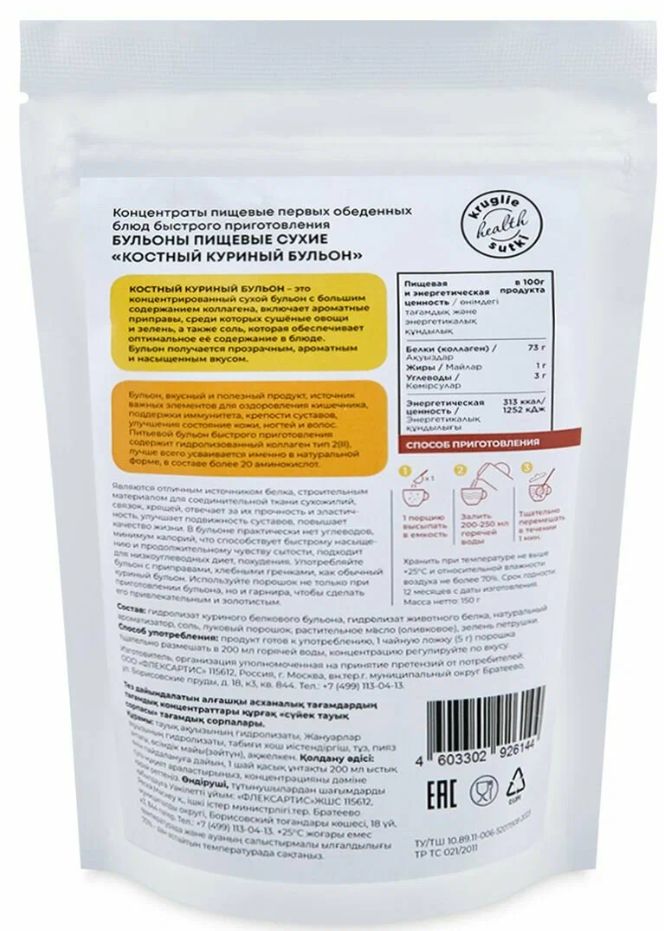 Круглые сутки Костный Бульон Куриный, 150 гр.