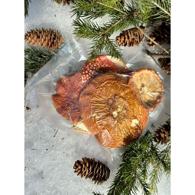Мухомор красный сушеный шляпки в вакуумной упаковке.